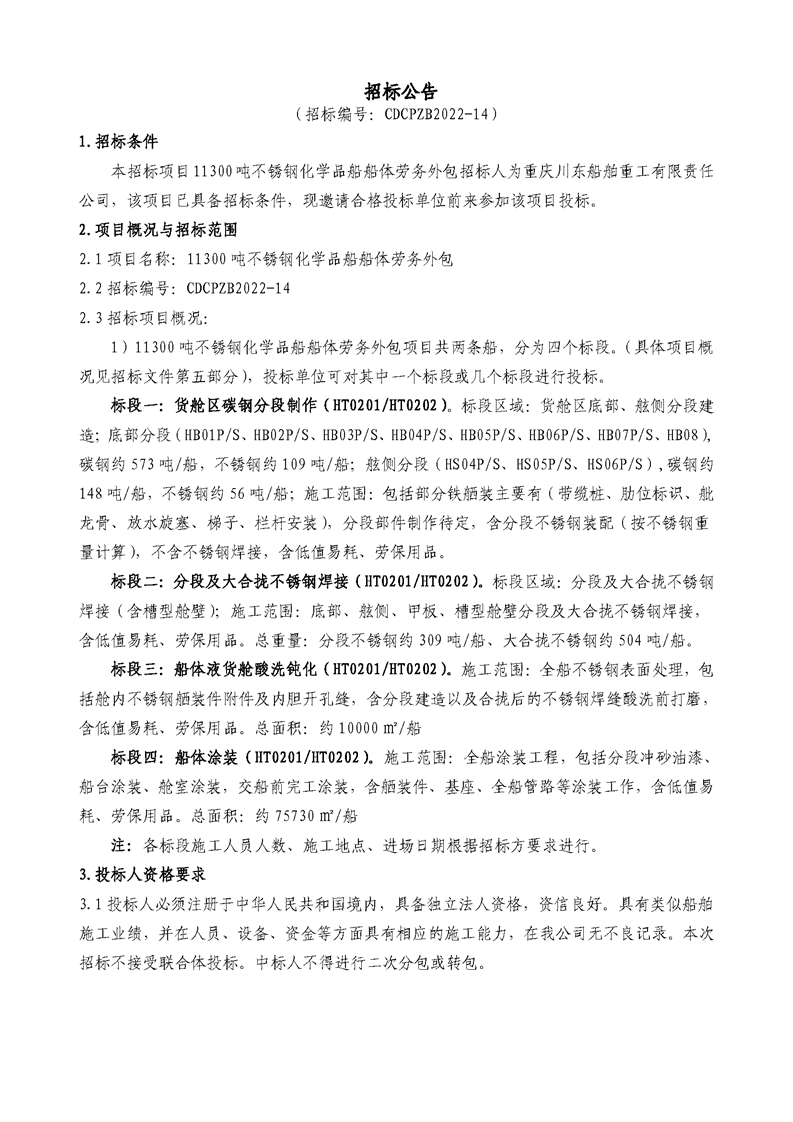 11300噸不銹鋼化學(xué)品船船體勞務(wù)外包