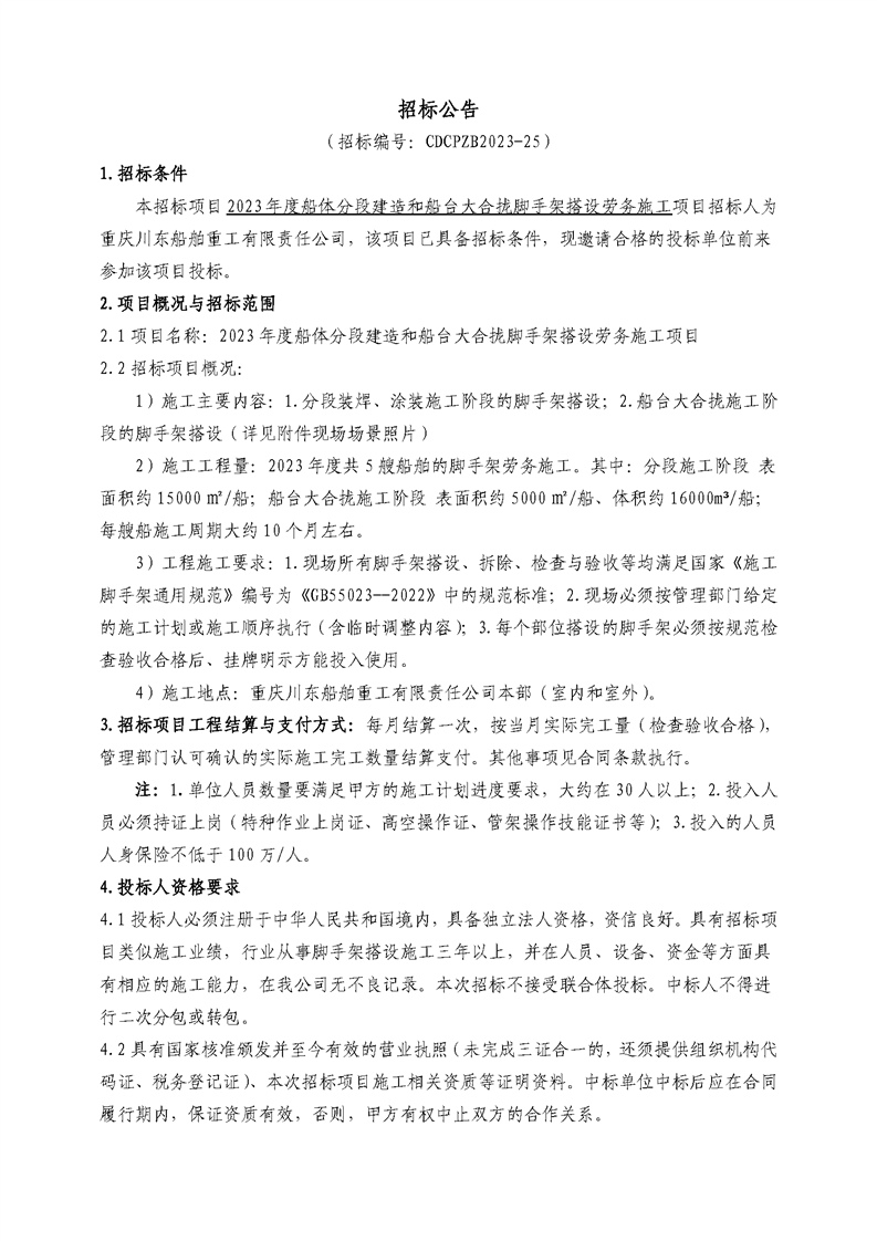 2023年度船體分段建造和船臺大合攏腳手架搭設(shè)勞務(wù)施工招標(biāo)公告