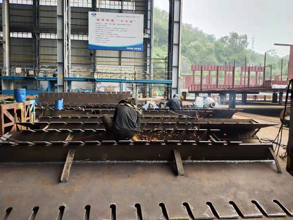 ????日前,中船重工重慶川東船舶重工有限責(zé)任公司正式開工建造涪陵江東濱江路烏江匝道鋼箱梁。
