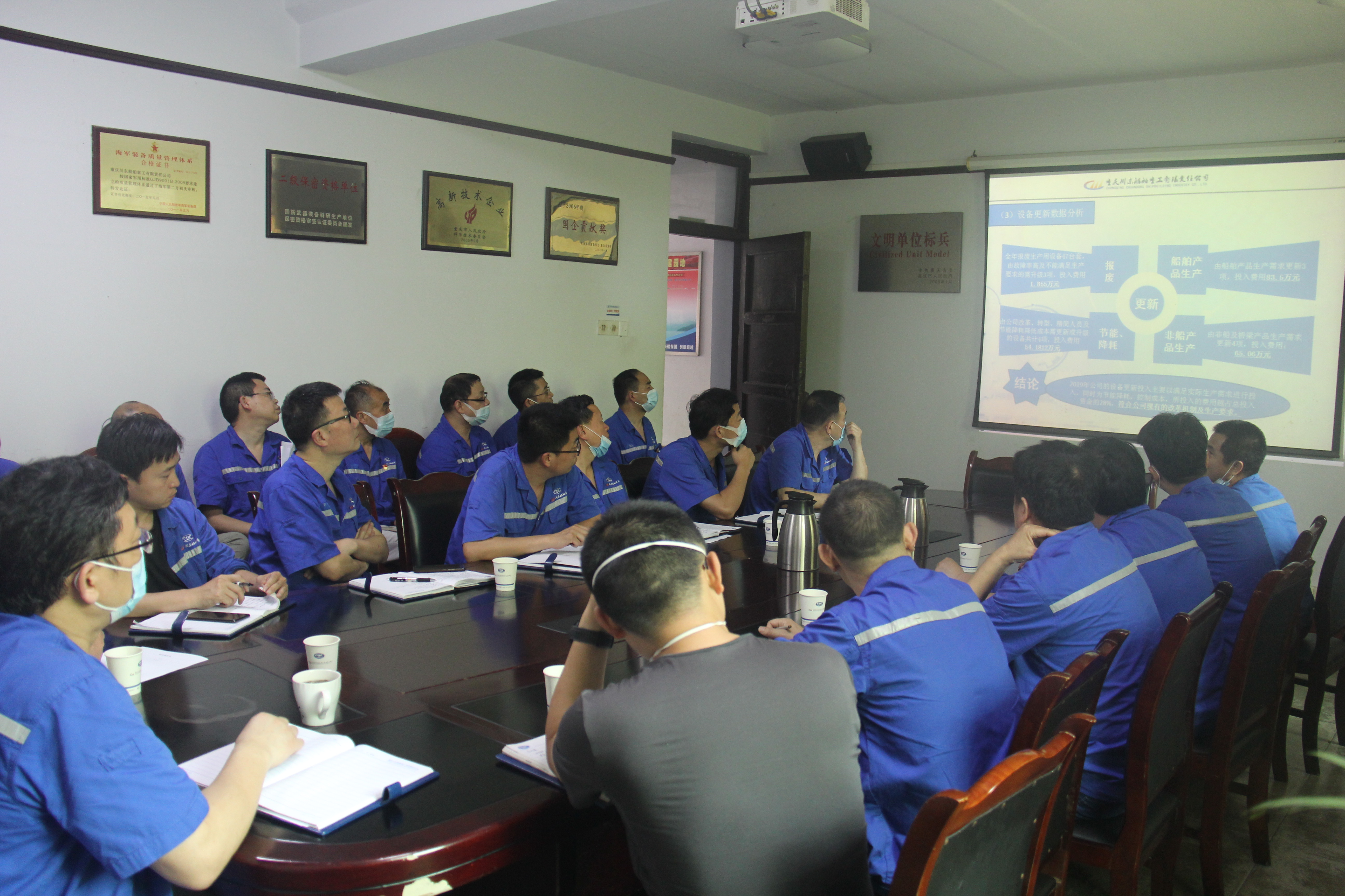 ????5月7日,中國(guó)船舶集團(tuán)所屬重慶川東船舶重工有限責(zé)任公司生產(chǎn)部主持召開2019年暨2020年一季度設(shè)備能源管理工作總結(jié)分析會(huì)。公司黨委副書記、總經(jīng)理王波,副總經(jīng)理雷禮軍,相關(guān)部門負(fù)責(zé)人和設(shè)備管理員參加會(huì)議。