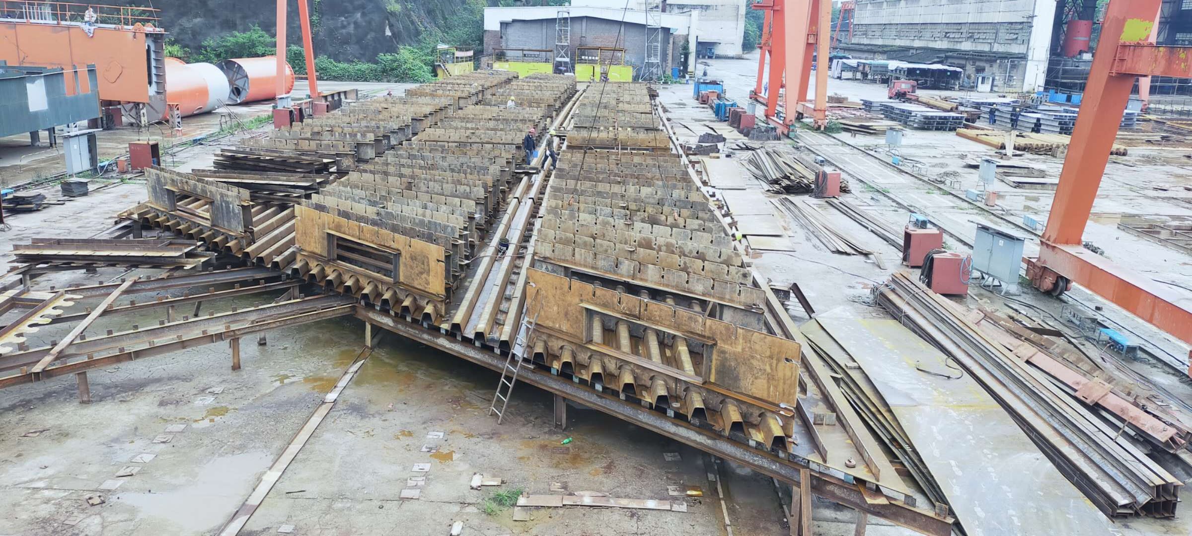 ????二是黛山大道一號鋼橋順利完成隔板上胎。該項目工作量大,施工進度面臨挑戰(zhàn),川船大業(yè)公司通過合理調配資源,組織項目組加班加點搶抓生產進度,順利完成隔板上胎,為后續(xù)生產創(chuàng)造了條件。