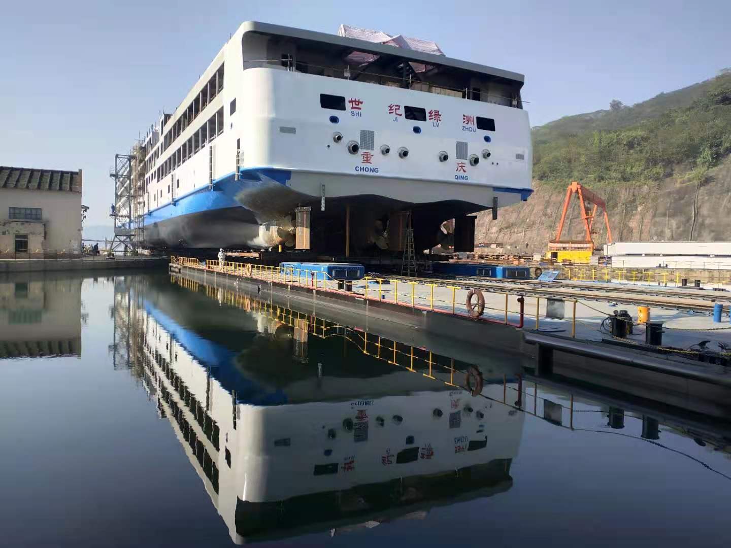 11月11日,中國船舶集團(tuán)所屬重慶川東船舶重工有限責(zé)任公司承建的650客位豪華游輪艉總段從廠房拖移至下水斜架,開始進(jìn)行艏、艉總段大合攏對(duì)接。