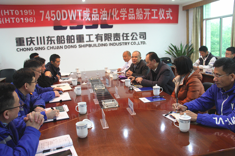 隨著點(diǎn)火按鈕的啟動(dòng),標(biāo)志著由公司承建的兩艘7450噸化學(xué)品船正式開工。儀式結(jié)束后,與會(huì)領(lǐng)導(dǎo)陪同船東、船級(jí)社各代表參觀了公司的船舶生產(chǎn)線,召開了三方座談會(huì)。會(huì)上,陳光匯報(bào)了公司就該項(xiàng)目所做的努力及生產(chǎn)情況,聽取了CCS船級(jí)社涂建川的建議,船東代表歐少東提出希望公司能保質(zhì)按期交付船舶。