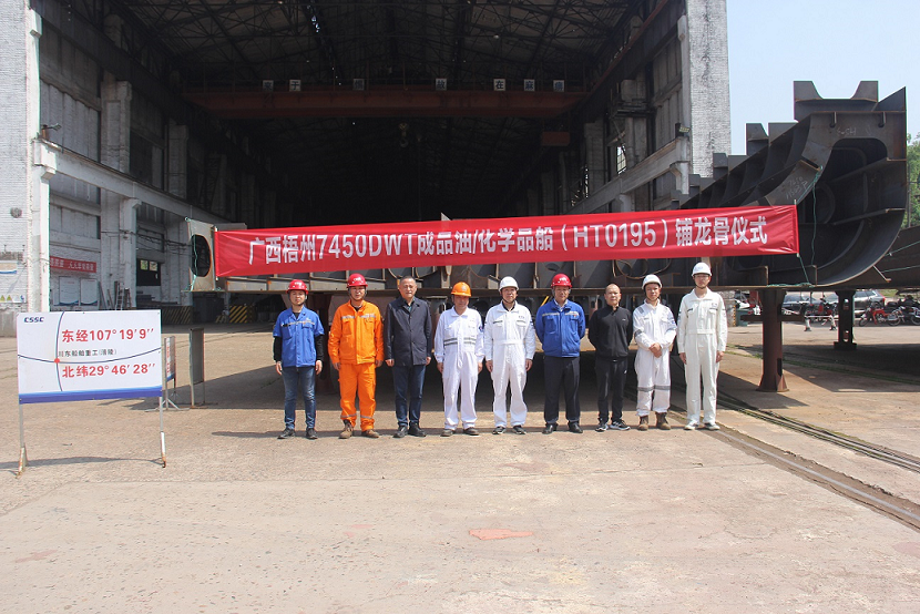 4月20日,中國(guó)船舶集團(tuán)所屬重慶川東船舶重工有限責(zé)任公司舉行2艘7450載重噸不銹鋼化學(xué)品船鋪龍骨儀式。船東代表、船級(jí)社監(jiān)理和公司相關(guān)負(fù)責(zé)人參加了儀式。