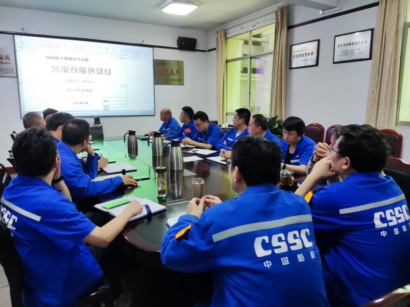 5月20日,中國船舶集團所屬重慶川東船舶重工有限責任公司召開8000載重噸不銹鋼化學品船定額工時專題分析會。會議由生產安全管理部主持,公司總經理王波,副總經理陳光、葉念,科技委專家以及相關部門負責人參加。