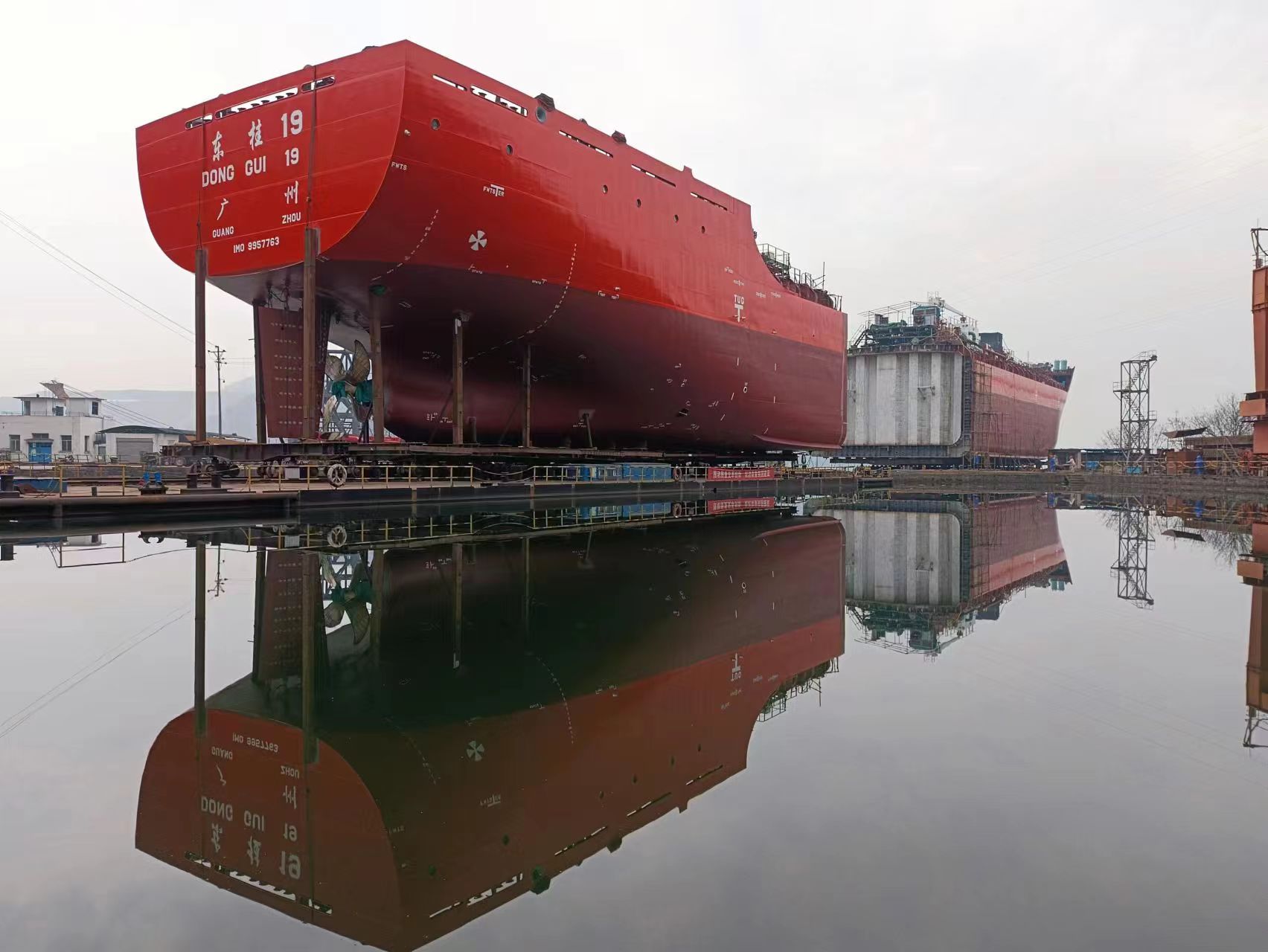 3月6日,由中國(guó)船舶集團(tuán)旗下川東造船為廣西梧州同舟船務(wù)運(yùn)輸有限公司建造的7450噸不銹鋼化學(xué)品船2號(hào)船艏總段、艉總段陸續(xù)拖移出廠房,開(kāi)始大合攏對(duì)接。
