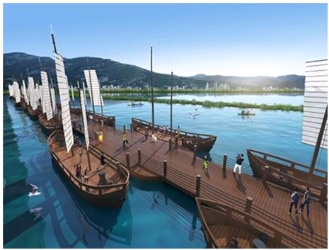 中國船舶川東造船完成滇池綠道橋腳舟項目景觀浮橋現(xiàn)場安裝