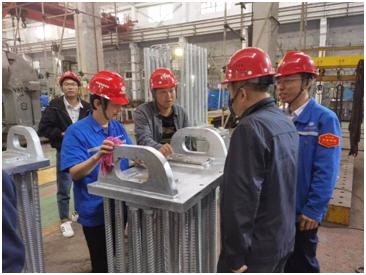 在公司相關(guān)部門人員的陪同下,驗收組在鋼構(gòu)部生產(chǎn)現(xiàn)場對項目固定抗拉支座、活動抗拉支座及相關(guān)零部件外觀質(zhì)量及其匹配性進行了檢測,對項目接下來的批量生產(chǎn)提出了建議。