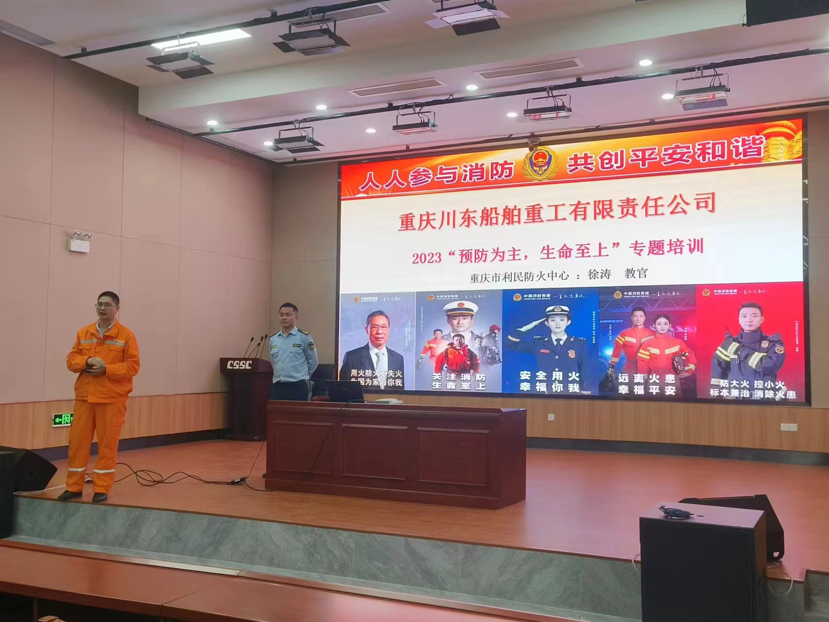 為進一步強化職工消防安全意識,提高防范自救能力,掌握急救基本操作技能,11月8日,中國船舶川東造船組織開展消防安全專題培訓。公司安全管理員、各部門班組長、安全協(xié)管員等參加學習培訓。