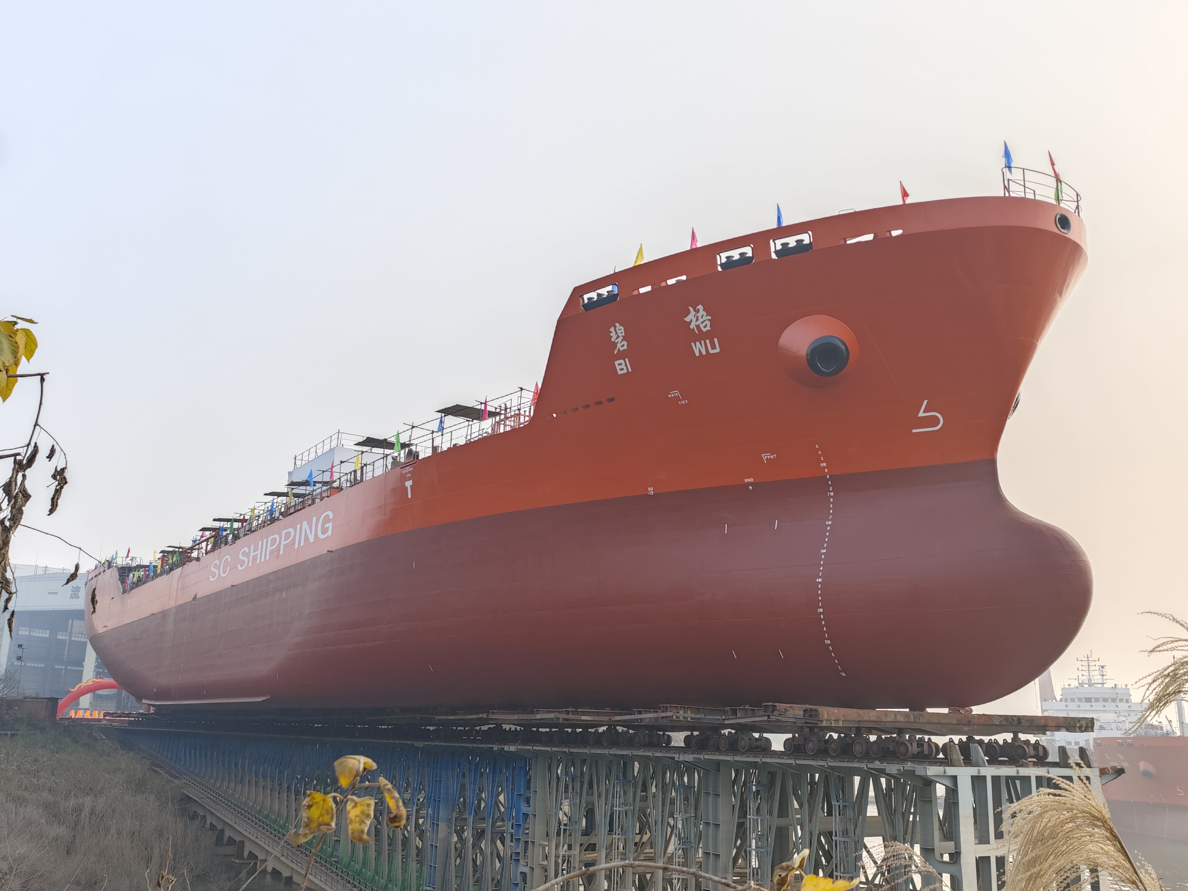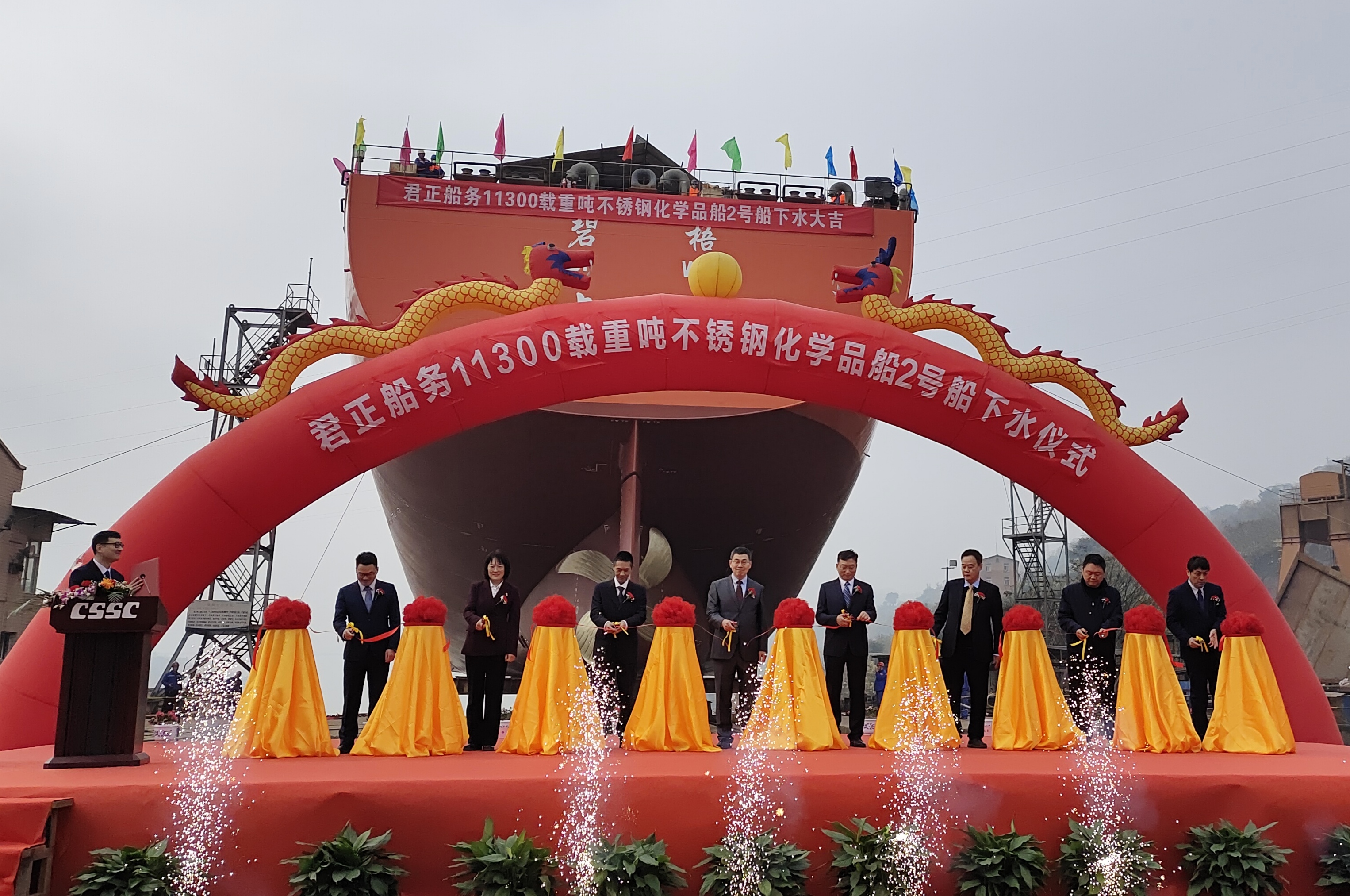 1月9日,中國船舶川東造船為上海君正船務(wù)公司建造的11300載重噸不銹鋼化學(xué)品船2號船順利下水,這也是川東造船今年下水的第一艘船舶。