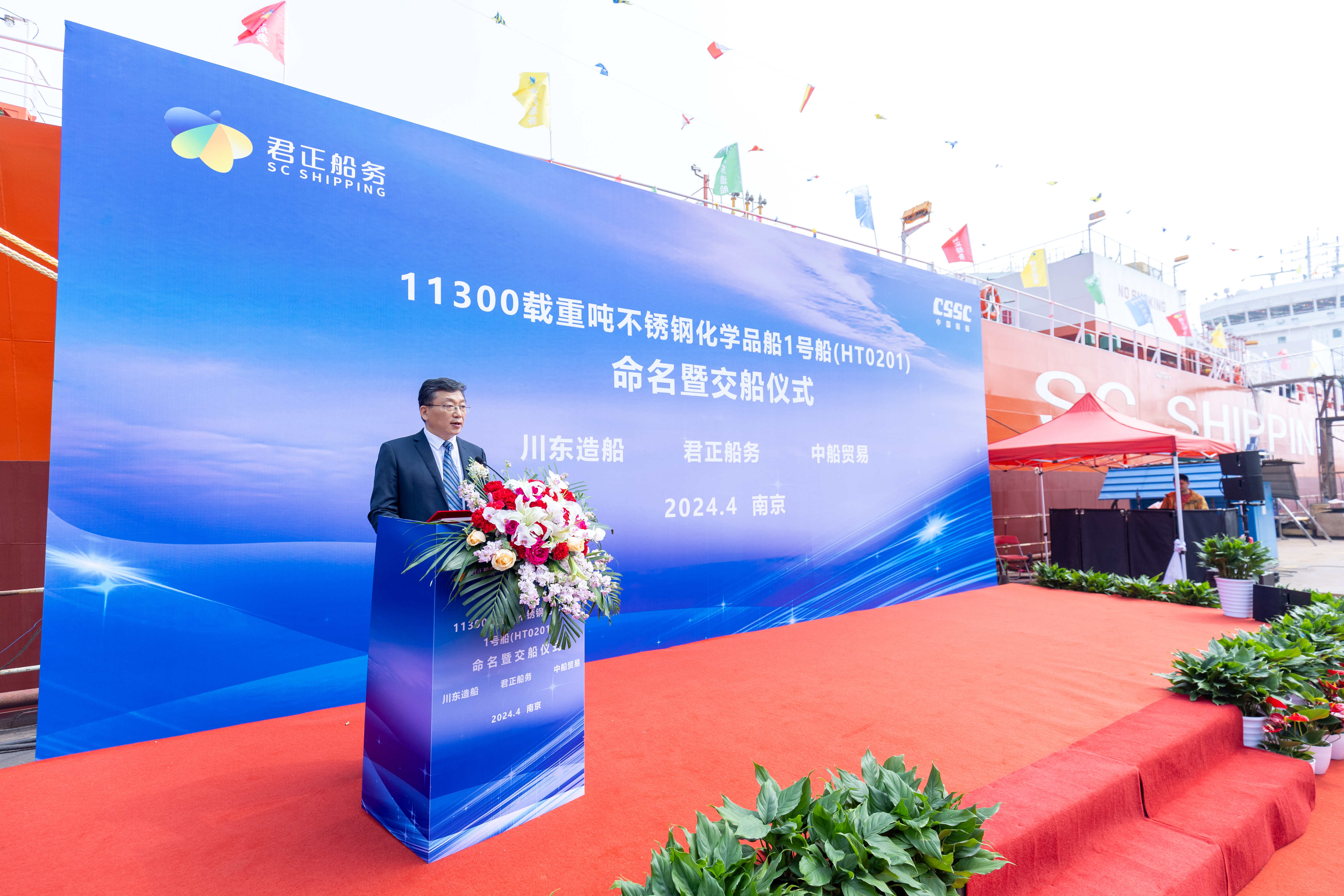 中國(guó)船舶川東造船舉行11300噸不銹鋼化學(xué)品船首制船命名暨交船儀式